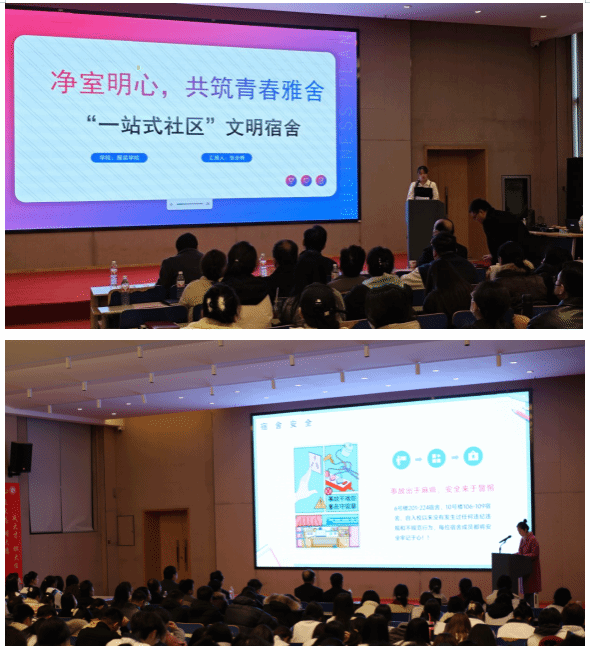 2024年我校以“一站式社区”综合模式建设为核心,加强组织领导,精心部署,严格遵循“六干净、七整齐和八要八不准”的标准,深入开展文明宿舍创建活动。各学院高度重视,辅导员强化督促,全体学生积极参与,为培养学生良好生活习惯、优化学习环境、加强公寓安全管理,提升育人功能起到了积极的推动作用。会上对126个文明宿舍予以表彰奖励,并颁发了锦旗。两名辅导员代表和1名学生代表进行了经验交流分享。