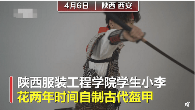 酷!西安一大学生因喜欢传统文化,用铁片鞋带自制中国古代盔甲