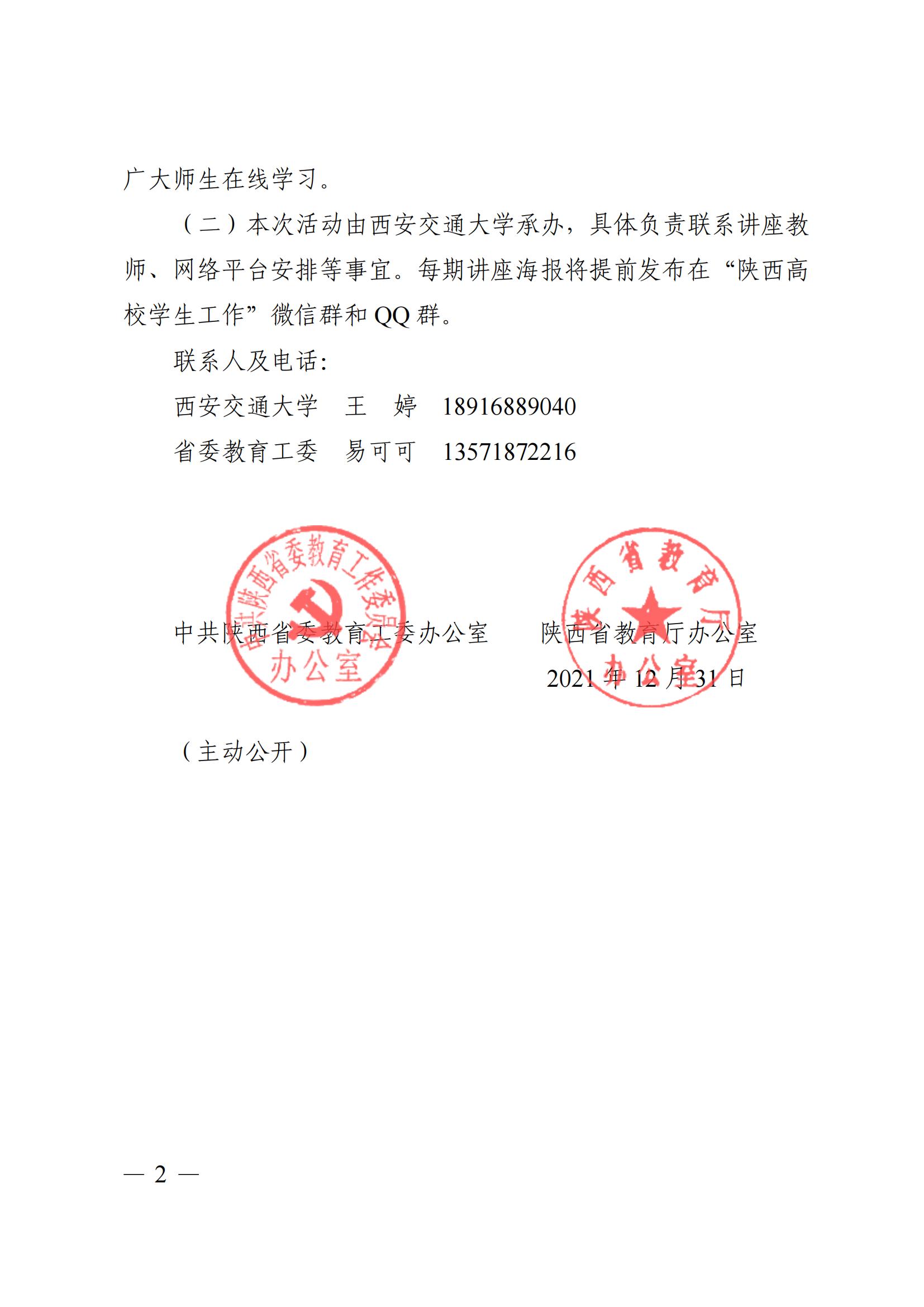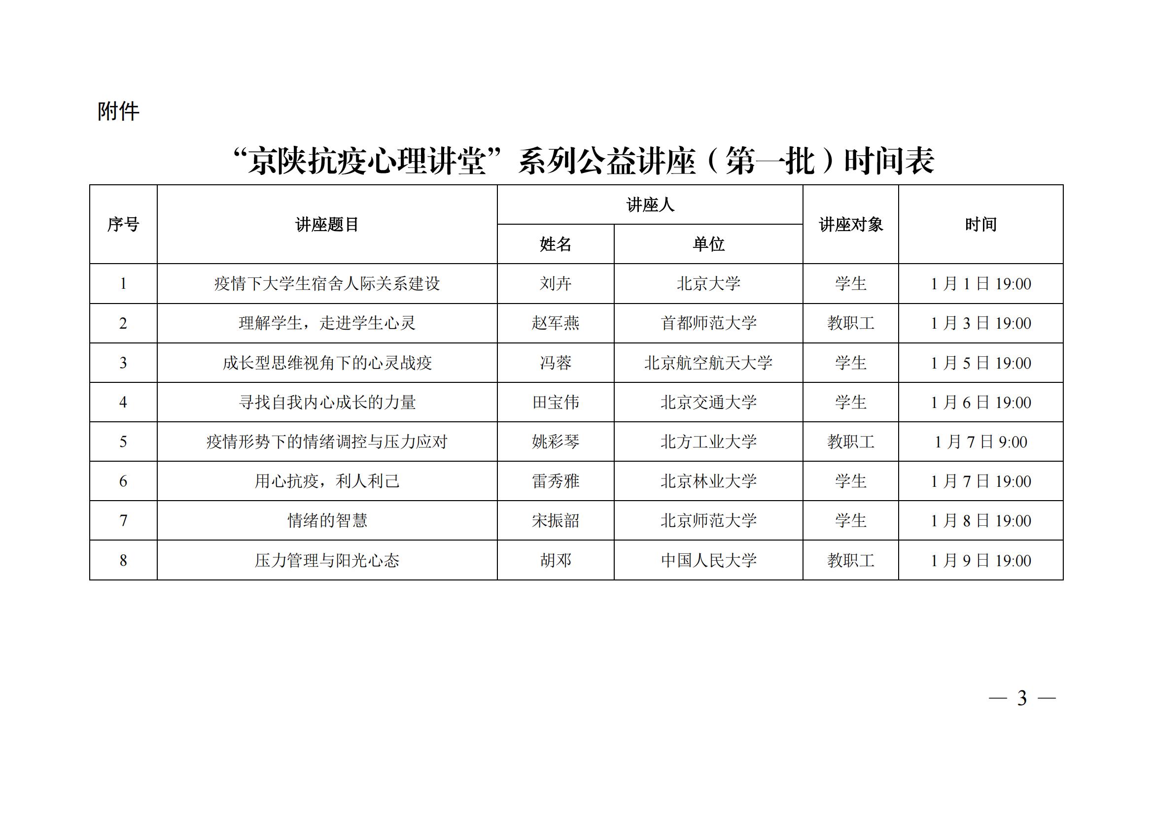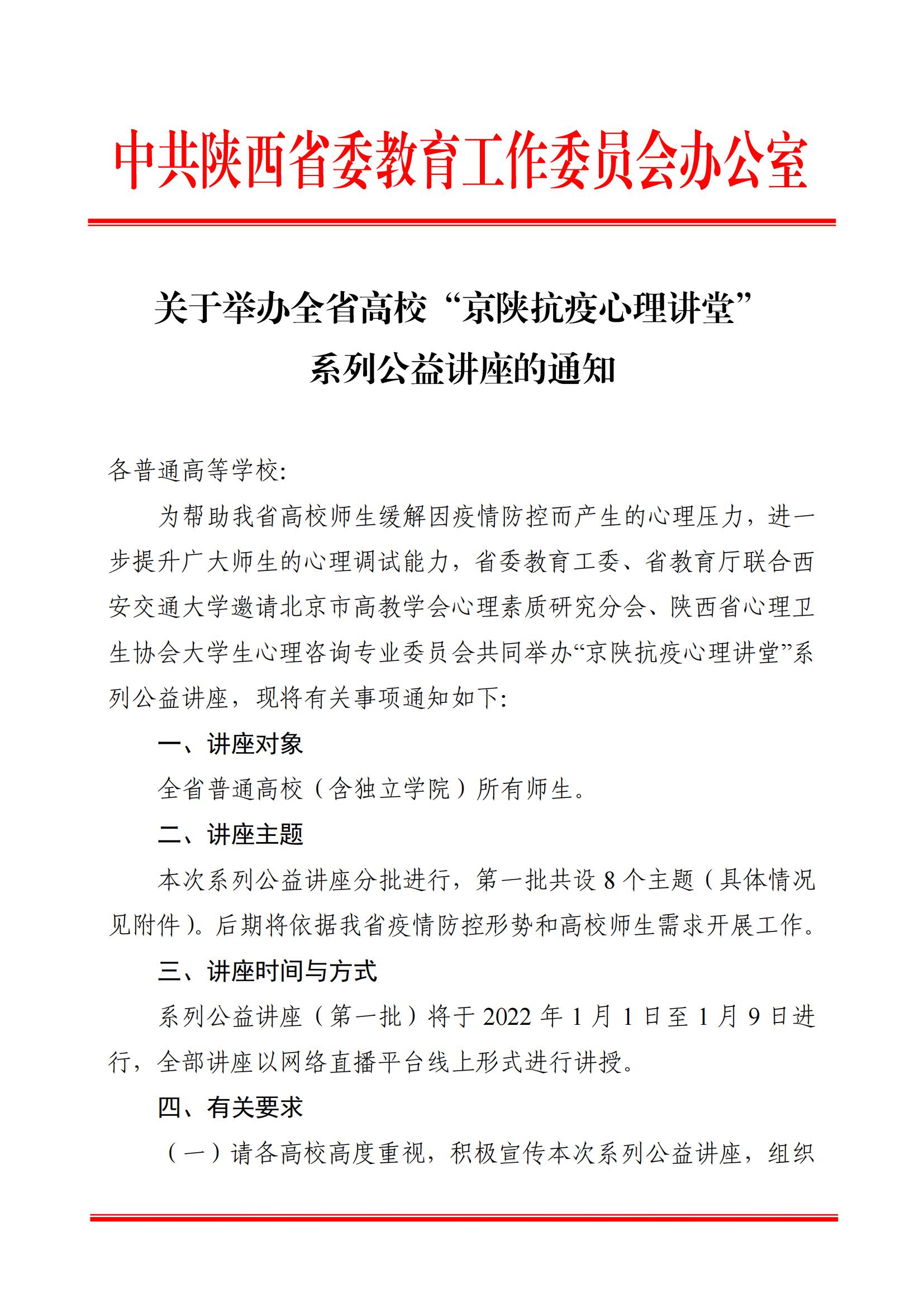 中共陕西省委教育工委办公室 陕西省教育厅办公室关于举办全省高校“京陕抗疫心理讲堂”系列公益讲座的通知
