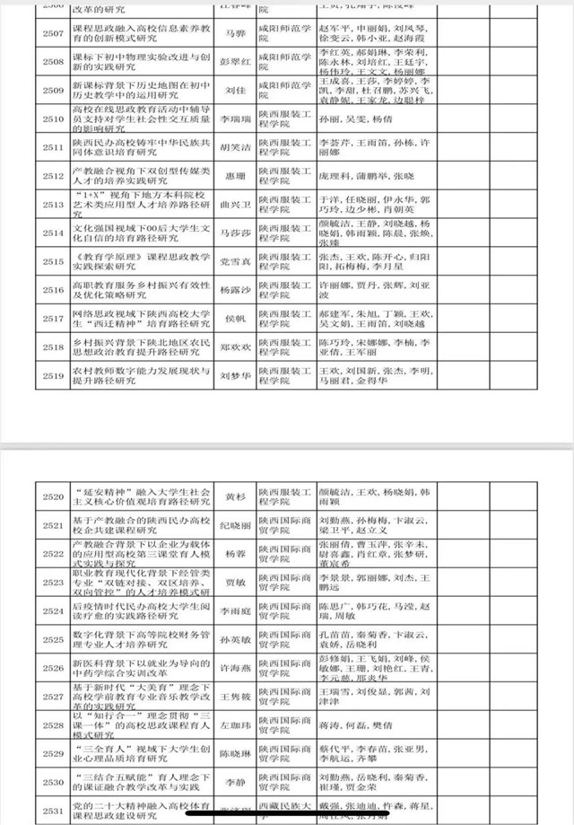 陕服新闻网讯(科研处)近日,陕西省教育科学规划领导小组下发《关于公布陕西教育科学“十四五”规划2023年度课题立项名单的通知》,我校获批立项11项。