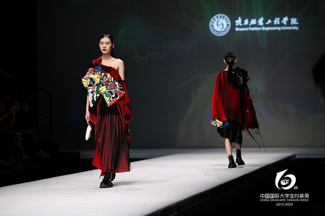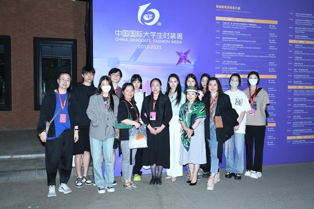 5月19日,服装学院院长张莉、产业学院院长徐彬、产业学院副院长吴朝辉、服装学院副院长刘红、服装学院副院长骞海清、服装学院办公室主任暨表演系主任呼啸带领表演系八位优秀学生符源、高艺敏、贺子俊、孟玥西、王冠群、杨欣雨、李惜琛、殷萌进京参加2023中国国际大学生时装周陕西服装工程学院毕业作品专场发布会。