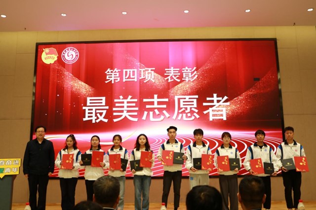 姜寿山、王军周、李宗领、刘继兵为校团委、健康学院团总支、服装学院团总支颁发“咸阳市五四红旗团委”“咸阳市五四红旗团总支”“五四红旗团总支”“五四红旗团支部”“活力团支部(社团)”“共青团先进工作者”“优秀共青团员”“优秀共青团干部”“优秀社团工作者”“最美志愿者”等集体、个人颁奖。校团委书记董良超宣读表彰决定。