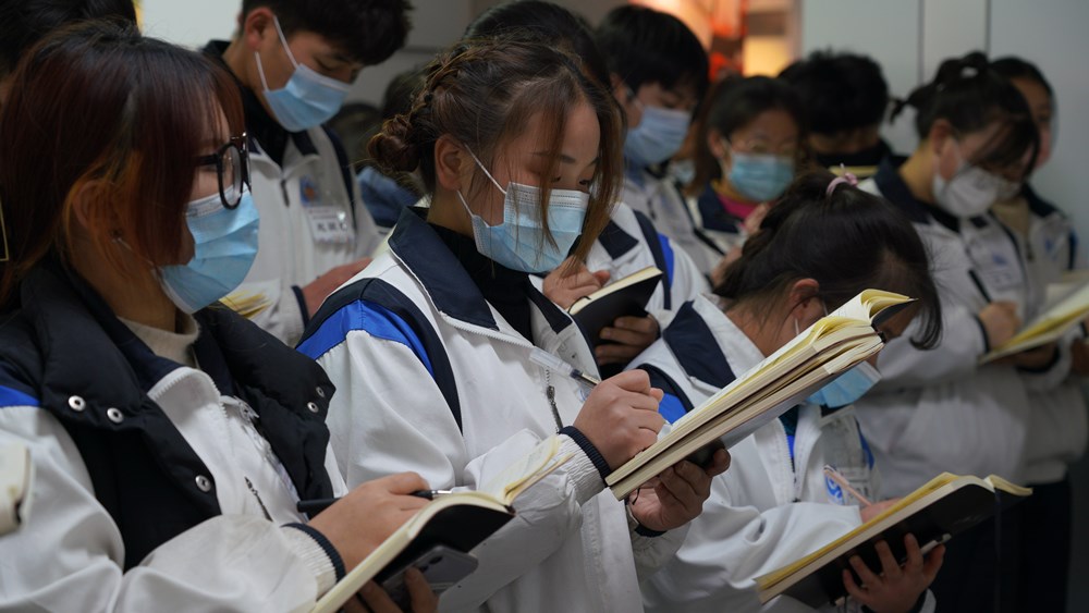 8:40一列朝气的队伍,一声热气腾腾的口号,瞬间划破了宁静校园的冷清。陕服青干院第九期学员提前20分钟到达季羡林国学院参加主题体验学习活动。这是一支由165名学员,7名教官组成的特别队伍。学员们一袭白色校服,教官们则着一身训练迷彩装,蓝天下的白色格外耀眼,白色海洋里的一抹军绿色显得如此迷人,一阵阵腊梅花香随风扑面而来,冬日里的季羡林国学院生机盎然!