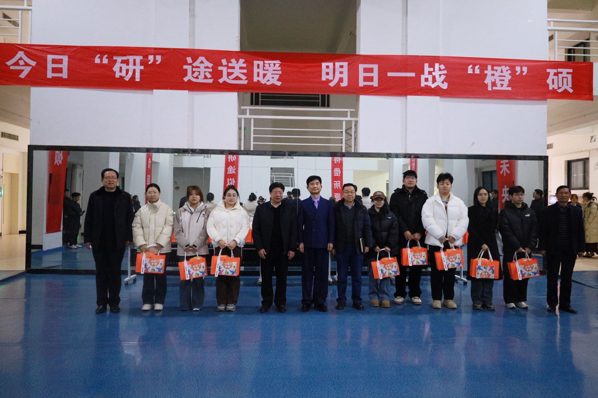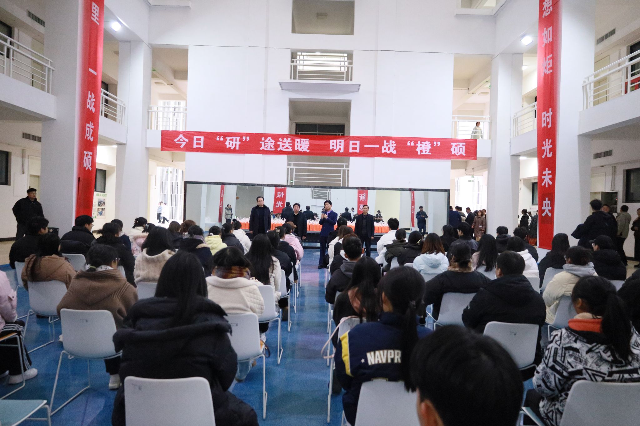 陕服新闻网讯(董良超)道阻且长,行则将至,一年一度的全国硕士研究生统一招生考试在即。在最后的冲刺阶段,为了缓解考研学子的备考压力,鼓舞考研学子士气,以积极的精神面貌迎接即将到来的考试。12月19日下午,学校董事长吕明博士,校长姜寿山,党委书记王岗,副校长潘庆才,党委副书记刘继兵深入A区大厅,为正在紧张备考的2021级考研学子举办考前动员大会,关怀鼓励学生并送上精心准备的考研暖心礼包,护航研途“最后一公里”。