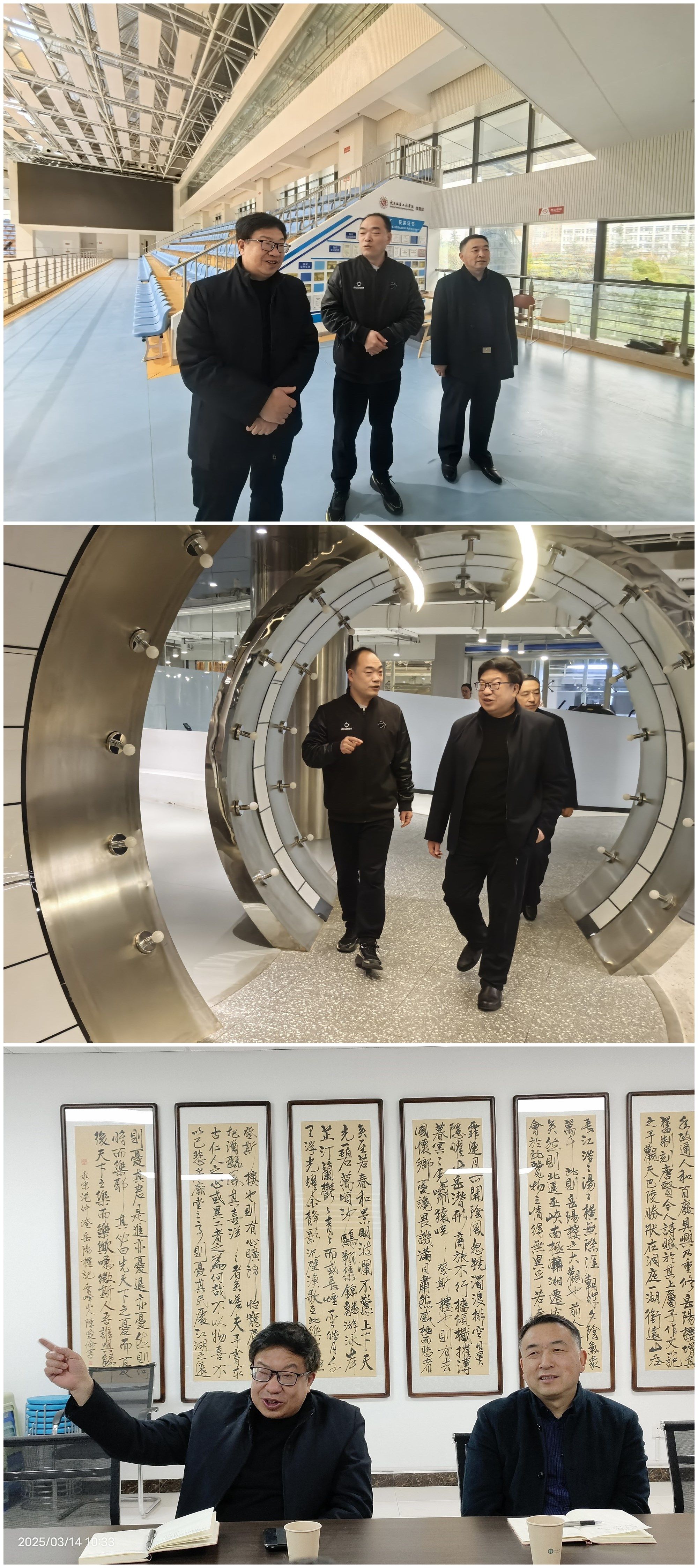 王岗在体育部副主任倪德财、体育馆场馆管理中心负责人张阳老师、基础教研室李勇老师、专项教研室闫鹏旗老师的陪同下实地查看了体育部校园文化墙建设和体育场馆基础设施及使用管理情况。