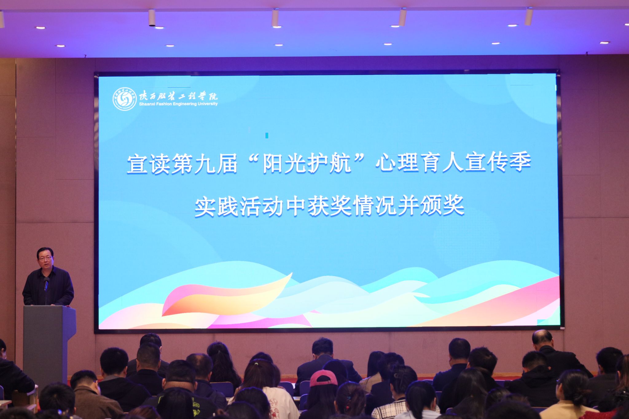 学校心理健康教育中心主任杨琰华宣读了《陕西服装工程学院第十届“阳光护航”心理育人宣传季实践活动方案》。