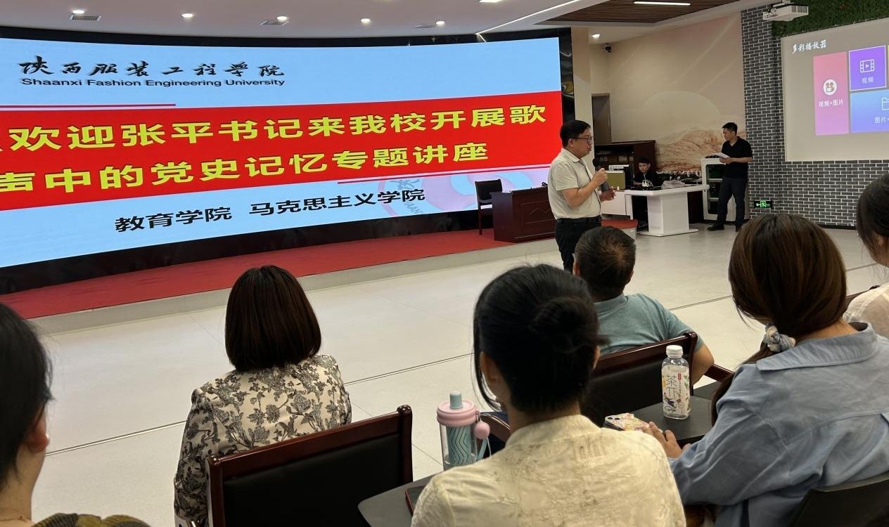 陕服新闻网讯(教育学院)5月14日下午,学校在马克思主义学院虚拟仿真实验室举办了以“歌声中的党史记忆”为主题的专题讲座,邀请原西安工程大学离退休办公室党委书记张平主讲。校长姜寿山、党委书记王岗、党委副书记刘继兵,教育学院和马克思主义学院的领导与师生代表共同聆听了一场思想与情感交织的精彩讲座。教育学院教师党总支书记王华东主持讲座。