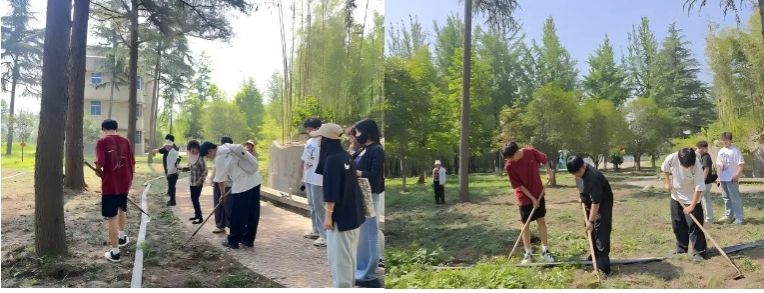 周至校区丰富多样的植物资源构筑起一座天然的 “植物课堂”。曹雪阳、陈文静两位教师引领学生漫步于校园小径,穿梭在绿树繁花之间,开展系统的景观植物识别实践活动。