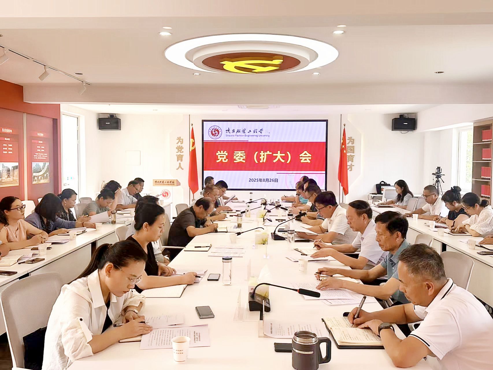 陕服新闻网讯(李文斌)8月26日下午,学校在行政楼326会议室召开党委(扩大)会议,学习习近平总书记近期重要讲话重要指示精神,传达有关会议精神,研究贯彻意见。校党政领导、校党委委员、纪委委员、各党总支书记、直属党支部书记、职能处室负责人、党委工作部门负责人参加会议。党委书记王岗主持会议。