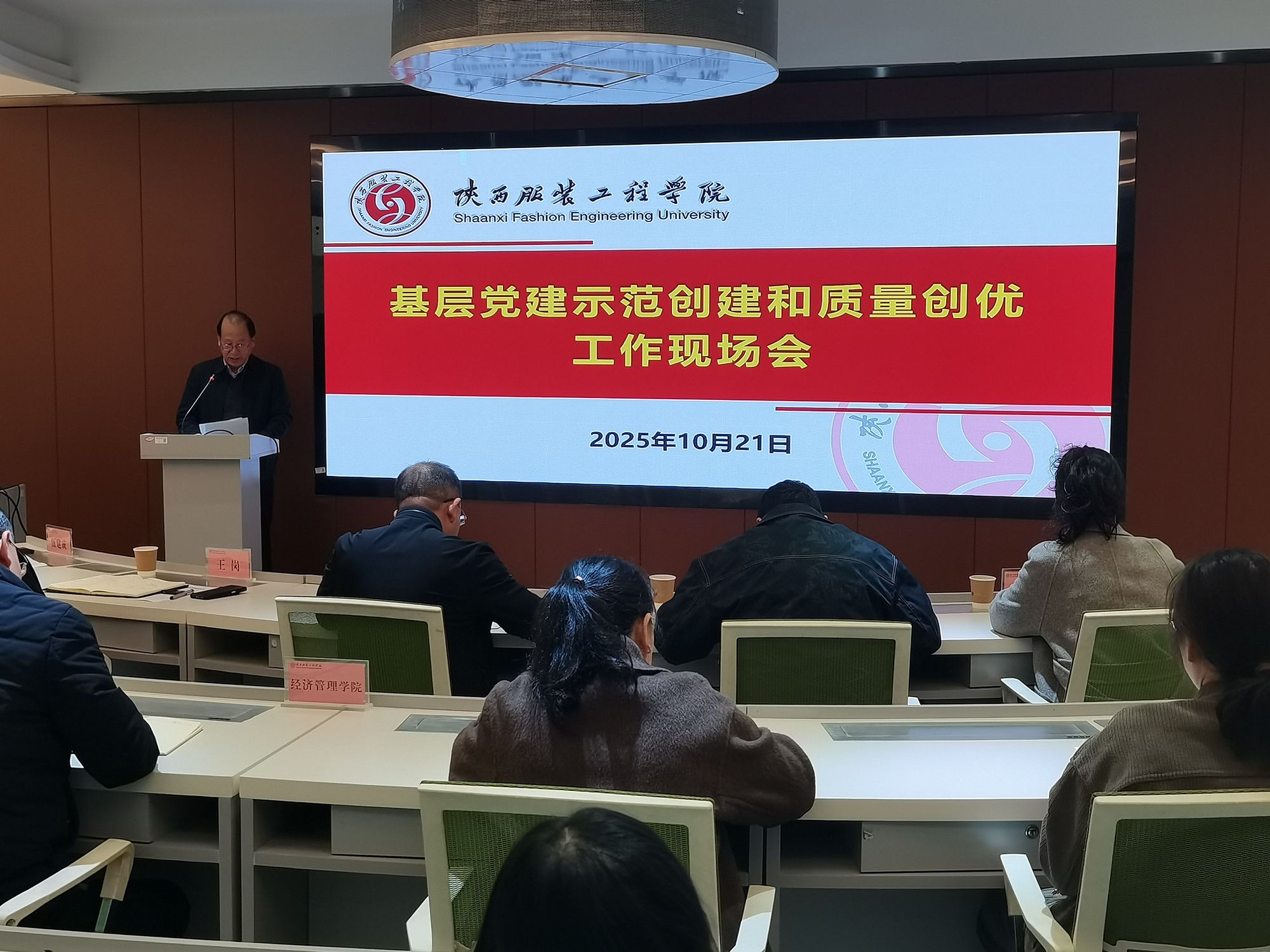 陕服新闻网讯(李文斌)为推动学校党建工作质量全面创优全面提升,10月21日,校党委在经济管理学院召开基层党建示范创建和质量创优工作现场会,贯彻落实中省关于加强高校党建工作决策部署和实施意见,安排部署学校基层党建工作。党委书记王岗出席会议并讲话,校党委委员、校长助理罗文谦主持会议,校党委委员、纪委委员、党委工作部门负责人、各二级学院党委、党总支、直属党支部、师生党支部书记、机关各党支部书记参加会议。